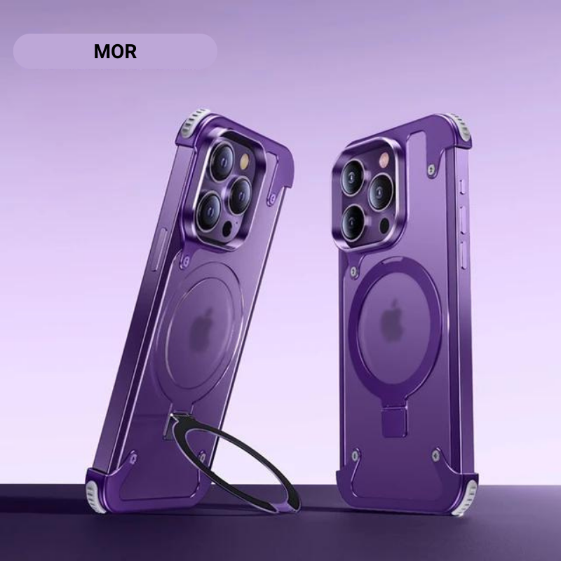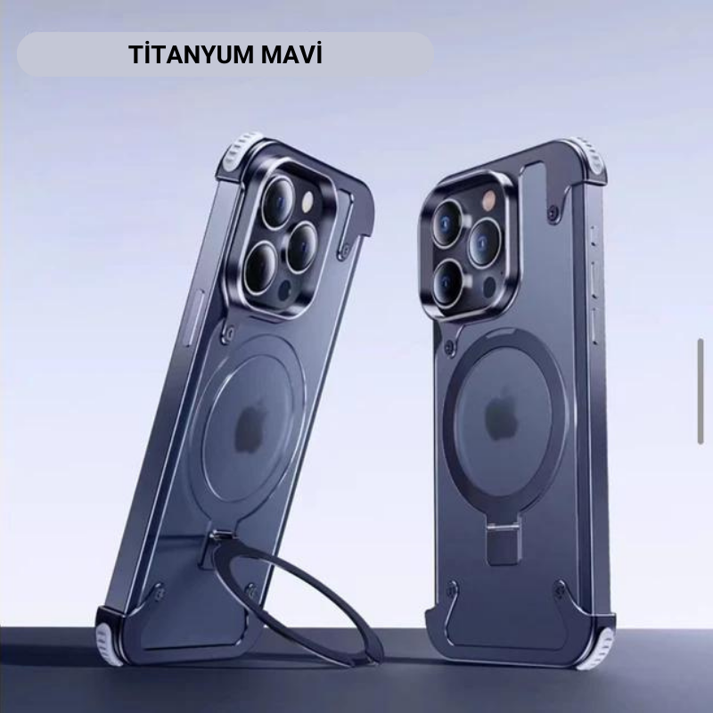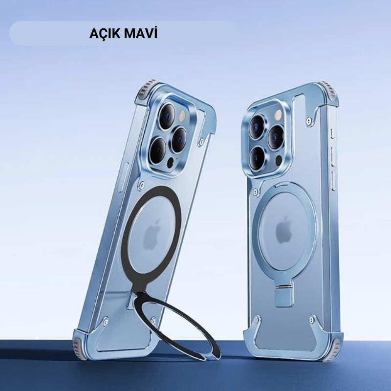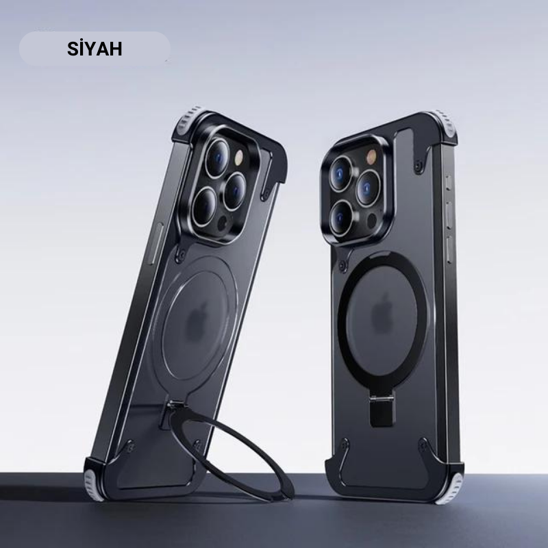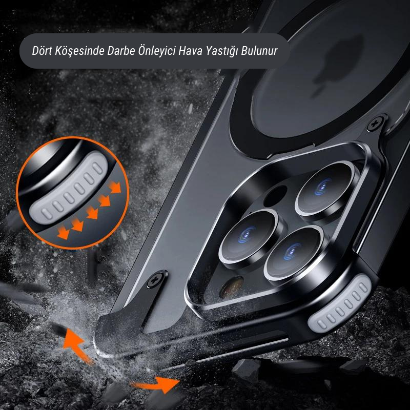 Lüks Güçlü Manyetik Magsafe Gizli Standlı Şeffaf Kapaklı Metal Hava Yastıklı Kılıf