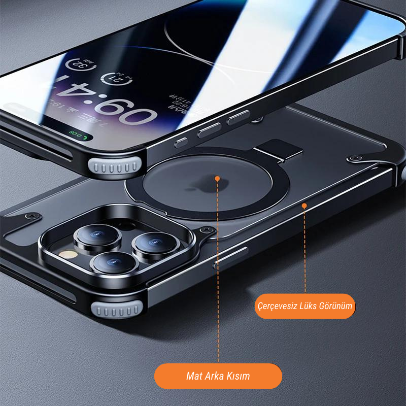Uçak yapımında kullanılan özel alüminyum alaşımlı metal kasamız, minimalist yapısının yanı sıra, ekranınızın açıkta kalmasını sağlarken ısıyı etkili bir şekilde dağıtan zarif çerçevesiz bir tasarıma sahiptir. Benzersiz tasarım, telefonunuza bir miktar sofistikelik katarak lüks bir his sunar ve onu daha da zarif hale getirir.
